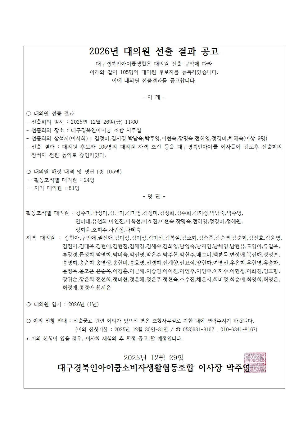 26³â ´ë±¸°æºÏÀξÆÀÌÄò»ýÇù ´ëÀÇ¿ø ¼±Ãâ°á°ú °ø°í¹®