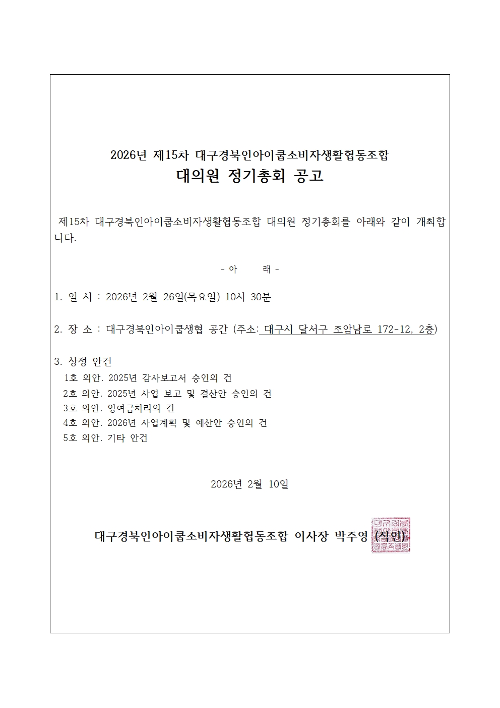 ´ë±¸°æºÏÀξÆÀÌÄò¼ÒºñÀÚ»ýȰÇùµ¿Á¶ÇÕ ´ëÀÇ¿ø Á¤±âÃÑȸ °ø°í