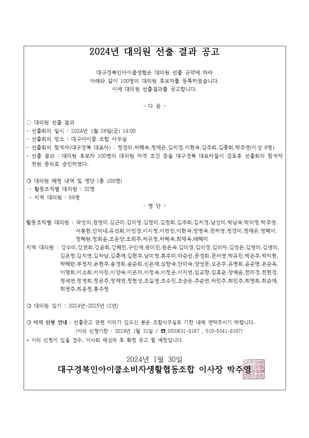 ´ë±¸°æºÏÀÎ ¾ÆÀÌÄò ´ëÀÇ¿ø ¼±Ãâ °á°ú °ø°í