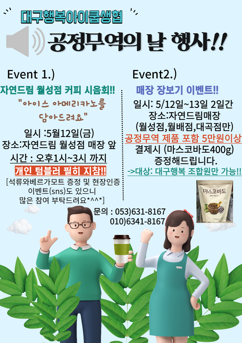 ¸Å³â 5¿ù µÑ° ÁÖ Åä¿çÀÏÀº ¼¼°è °øÁ¤¹«¿ªÀÇ ³¯(World Fairtrade Day)ÀÔ´Ï´Ù.